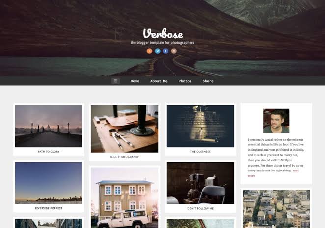 Verbose is made for photographers to shocase amazing talent infront of world and it has a about me box where people know who are you and highly customisable with colours, fonts, background, add or remove short post at homepage snippet.