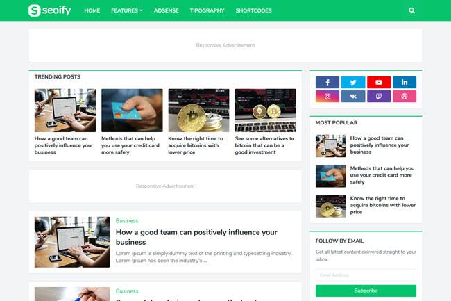 It completely responsivable and fast which made by professional and had special ads section (only available on permium version) otherwise locked, seoify is able to dive good amount traffic .